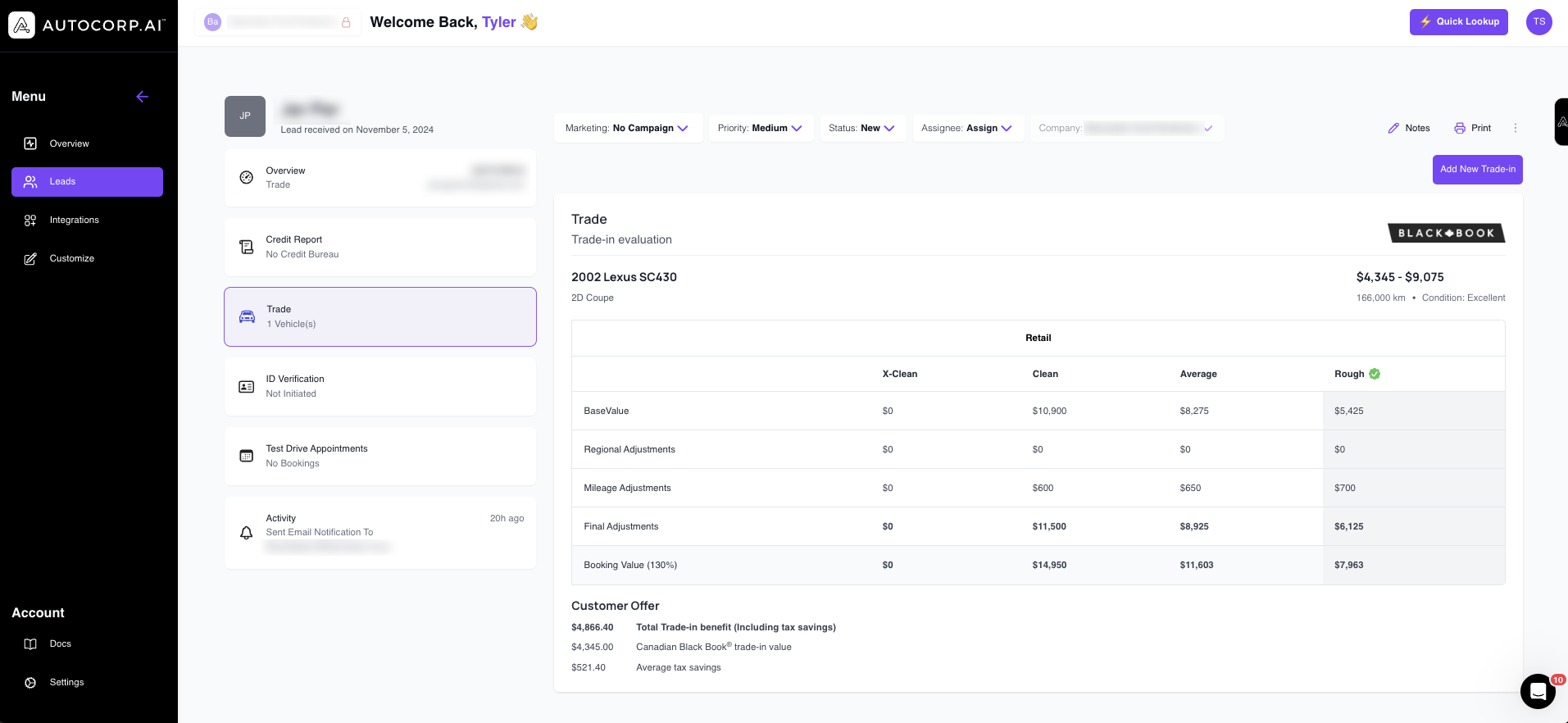 With Canadian Black Book data, AVA™ Trade offers immediate, reliable appraisals to speed up the trade-in process.