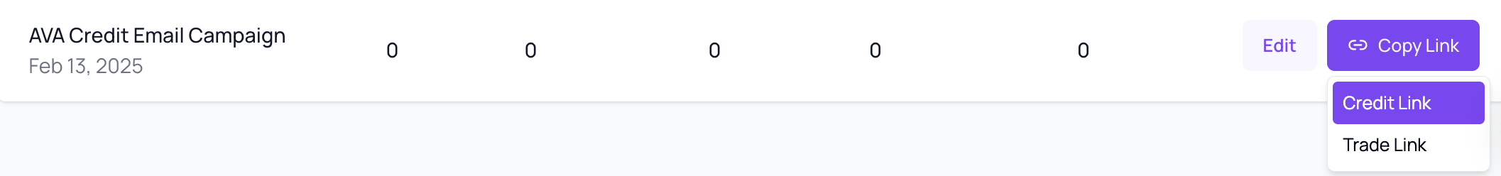 Once your campaign is created, select an AVA™ product link (Credit or Trade) and click “Copy Link” to save it to your clipboard.
