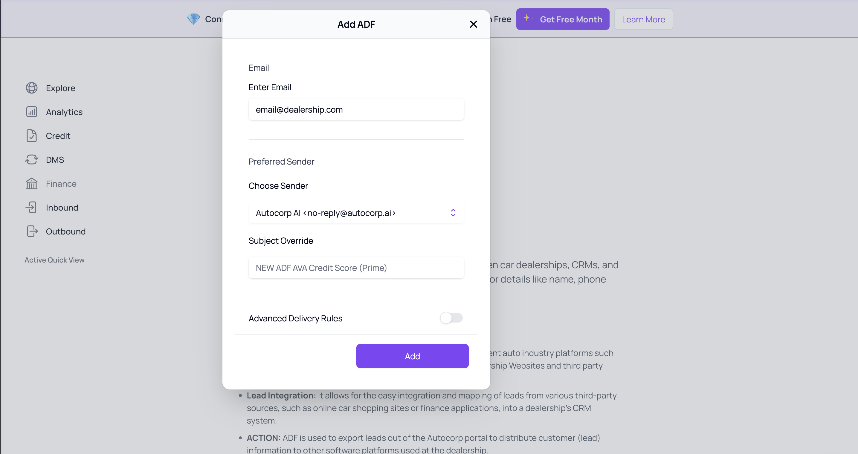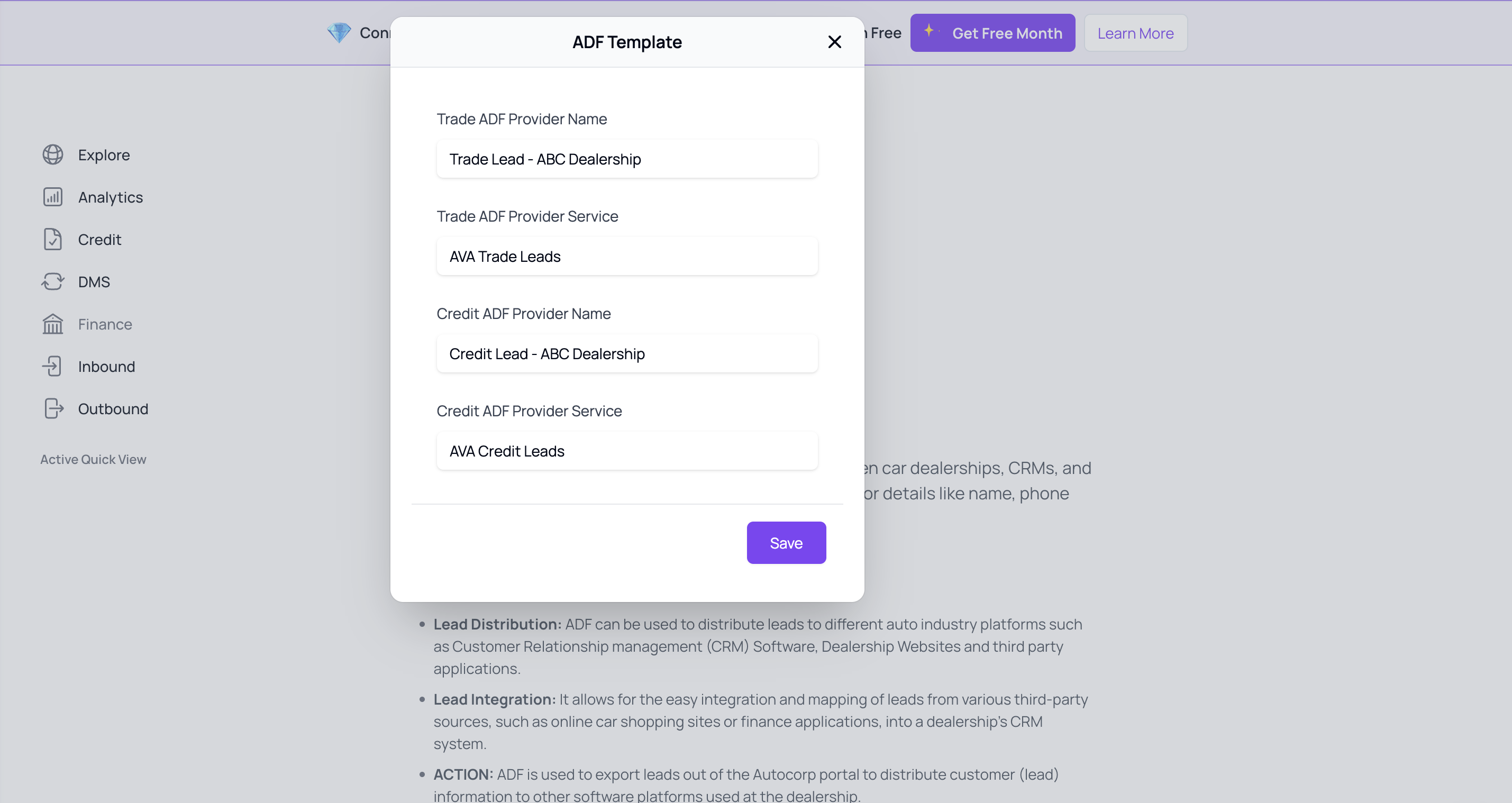 With your ADF email feed added and the corresponding ADF Template configured, your AVA™ portal is now set up to automatically receive and process leads from that specific email source.