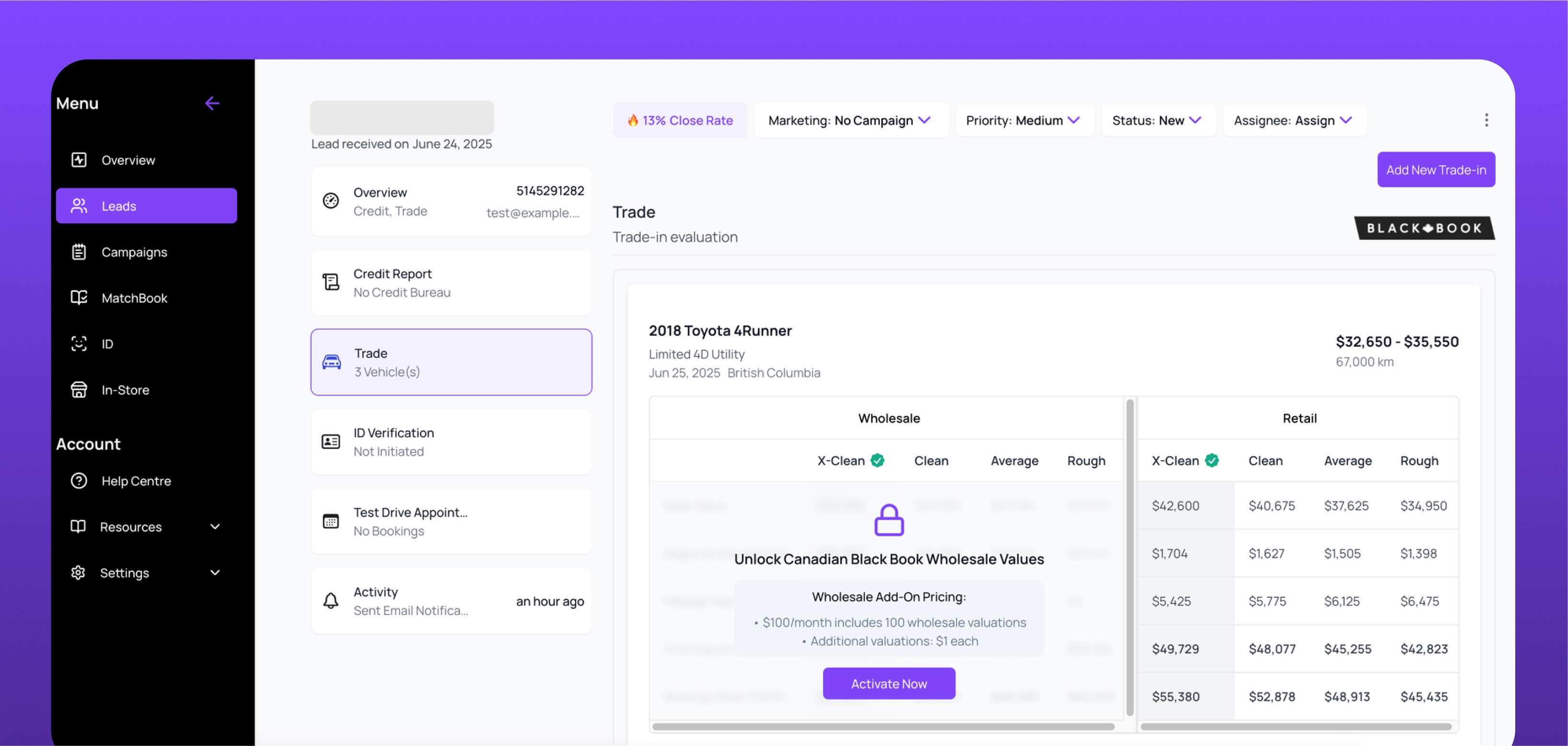 By default, AVA™ Trade only shows retail values for trade-ins. With the Wholesale Trade feature enabled, your dealership will also see real-time wholesale values pulled directly from Canadian Black Book.