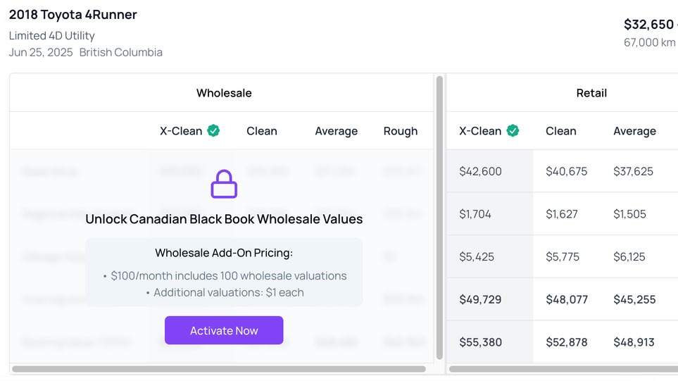 Give your team access to Canadian Black Book (CBB) wholesale values—right inside the Autocorp.ai Dealer Portal.