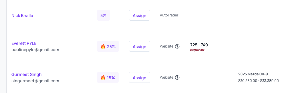 If a lead has a 10%+ close rate, it is flagged as a “hot lead” with a 🔥 icon in the lead list and in lead notification emails.