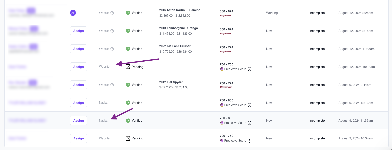 In the Leads section of the portal you will see a Source assigned to each lead.